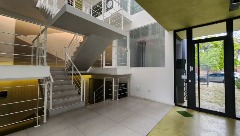 - Sector de oficina de 4,00 x 3,00 con cuatro ventanales de piso a techo a la calle, muy luminoso.